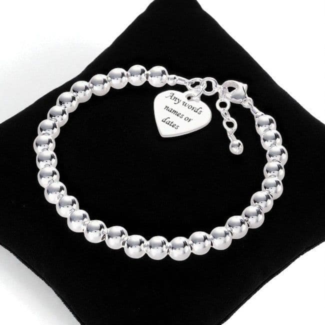 Engraved Heart Beaded Memorial Bracelet with Any Engraving. Perfect for engraving special names, dates, bible verses or other meaningful words, we can engrave up to 25 characters per side on the heart for you.