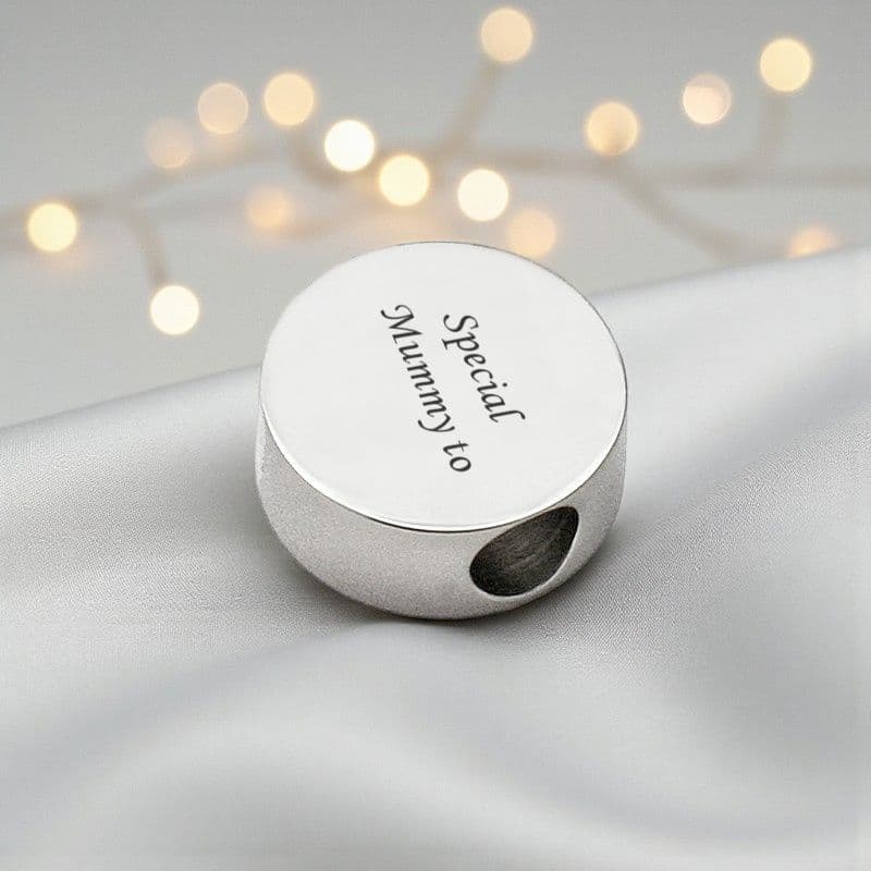 Personalise this lovely charm bead with the engraving of any words, names or dates of your choice.