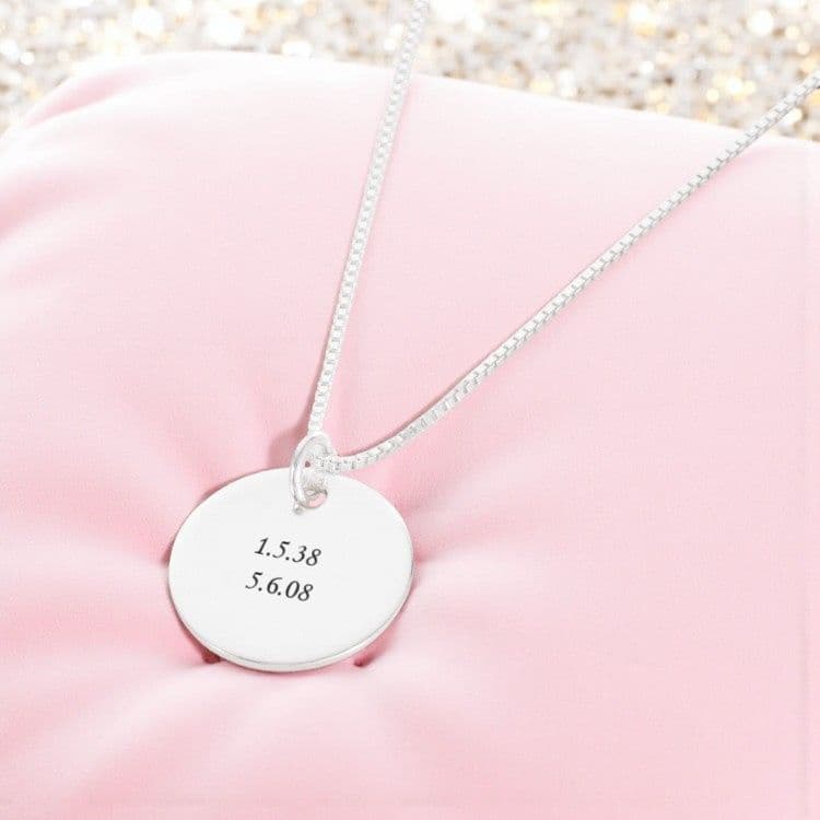 Engraved Sterling Silver Round Pendant Memorial Necklace.