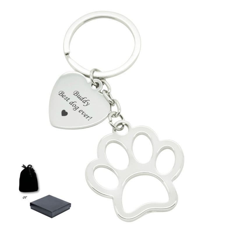 A personalised memorial keyring with personalised engraving on the heart which hangs alongside the large paw. We can engrave your choice of words to make a lovely sympathy gift or memorial gift to offer love and comfort to someone who is grieving the loss of a much loved pet or as a memory keepsake for yourself.