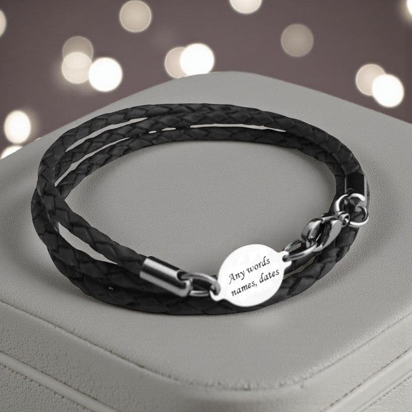 Mans Leather Memorial Bracelet with Engraving.
