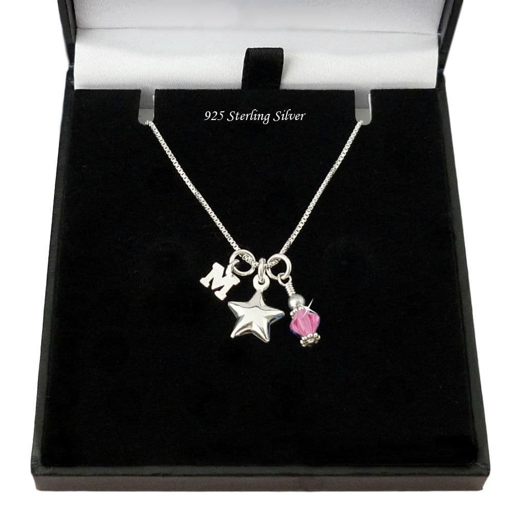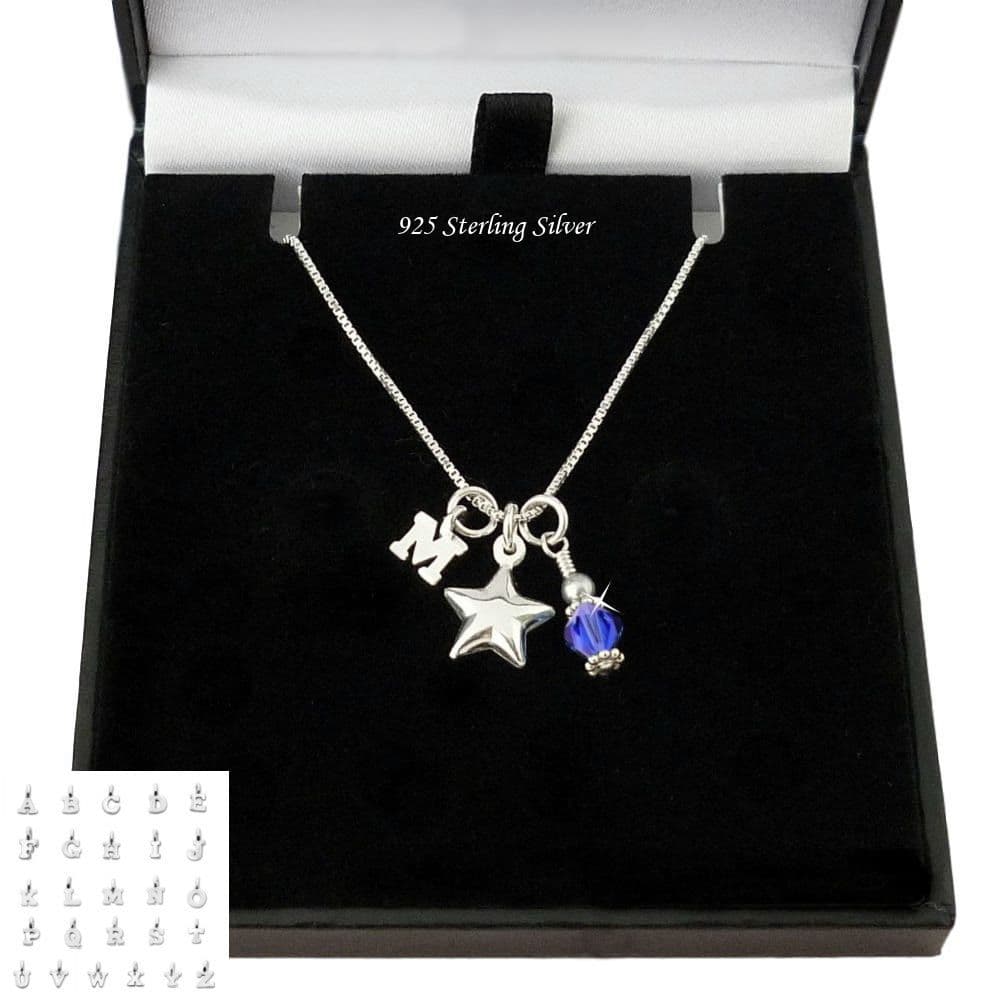 A unique sterling silver star necklace with birthstone and letter pendants which has been designed by us to bring comfort to someone who is grieving the loss of a loved one. We offer Free and fast UK delivery on all bereavement gifts.