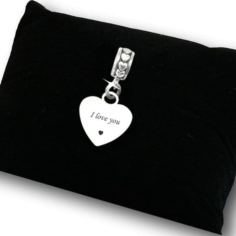 Heart engraved as shown or you can choose your own words by entering your desired text in the relevant boxes.