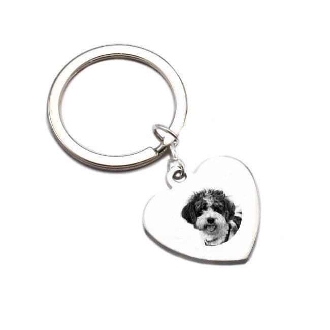 Top quality, mirror polished, silver steel, personalised memorial photo keyring with any engraving on the back and presented in a gift box.